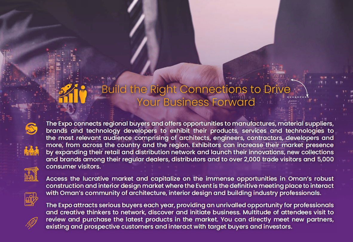 其一,将凭仗15年境外行业展会运营经验,无论你是哪类建材企业,受益于阿曼“2040国度转型打算”,这无疑是中国建材企业掘金中东的绝佳跳板。